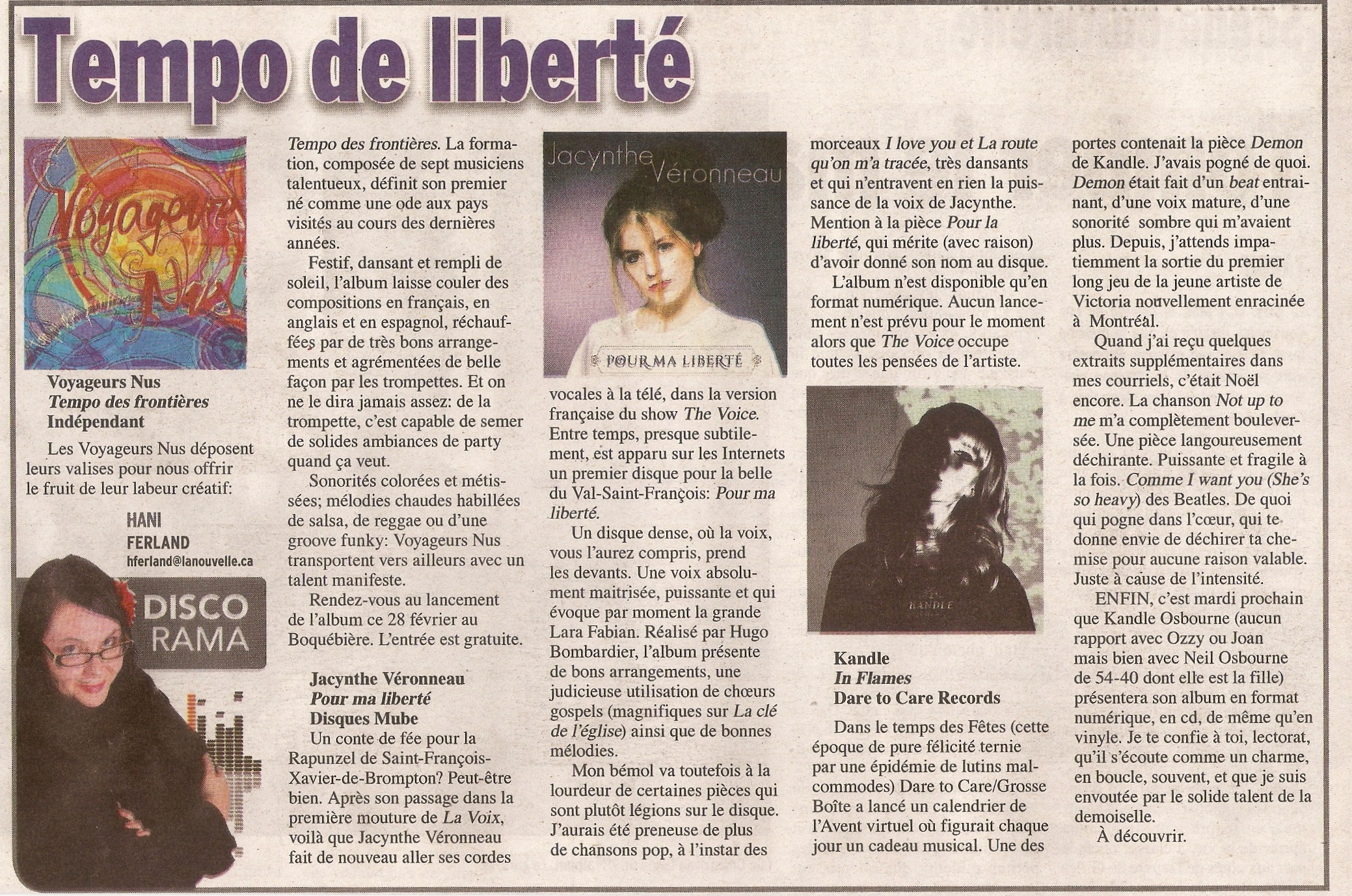 Source : LA NOUVELLE, Hani Ferland, Sherbrooke 26 février 2014, p. 16